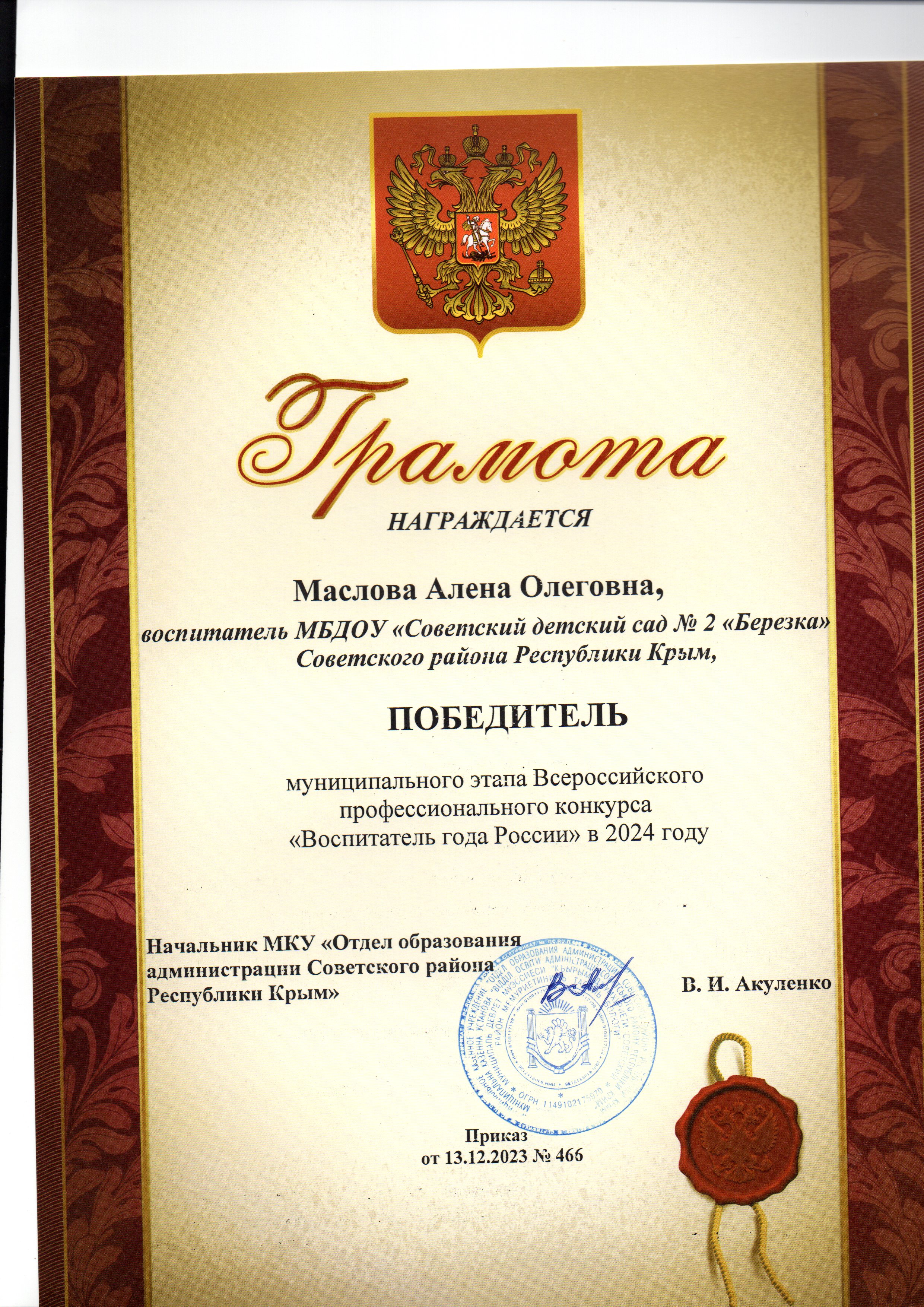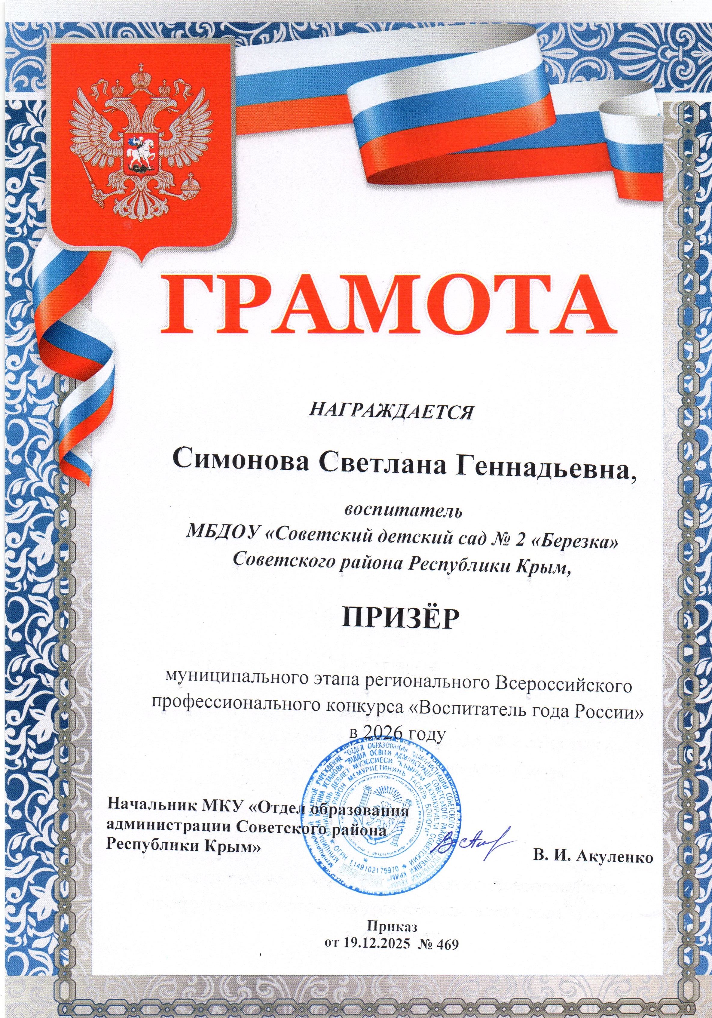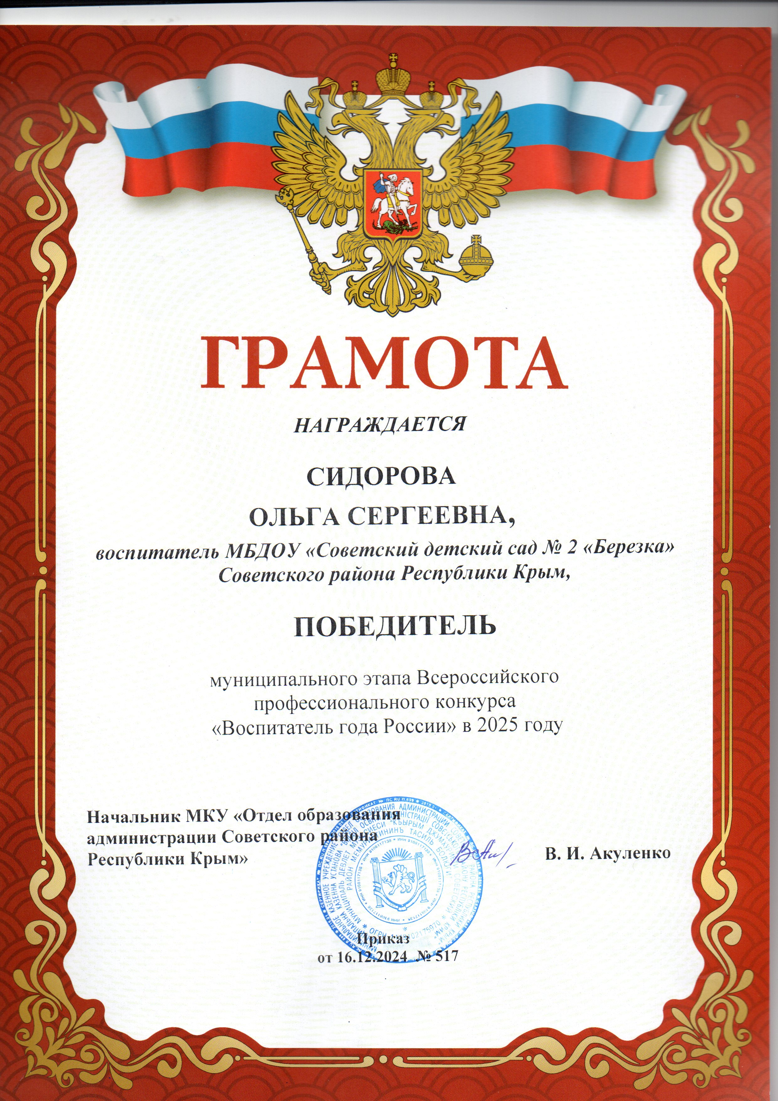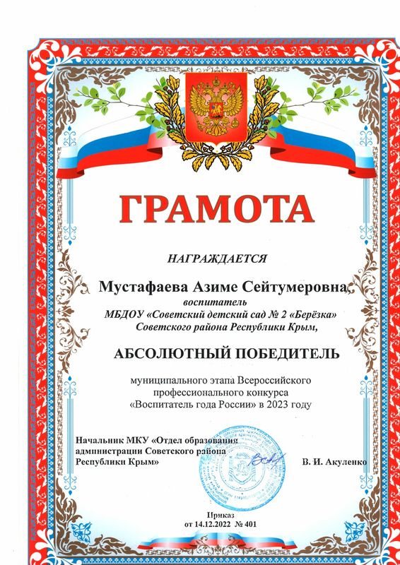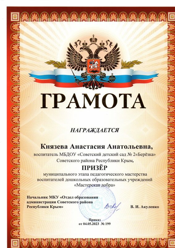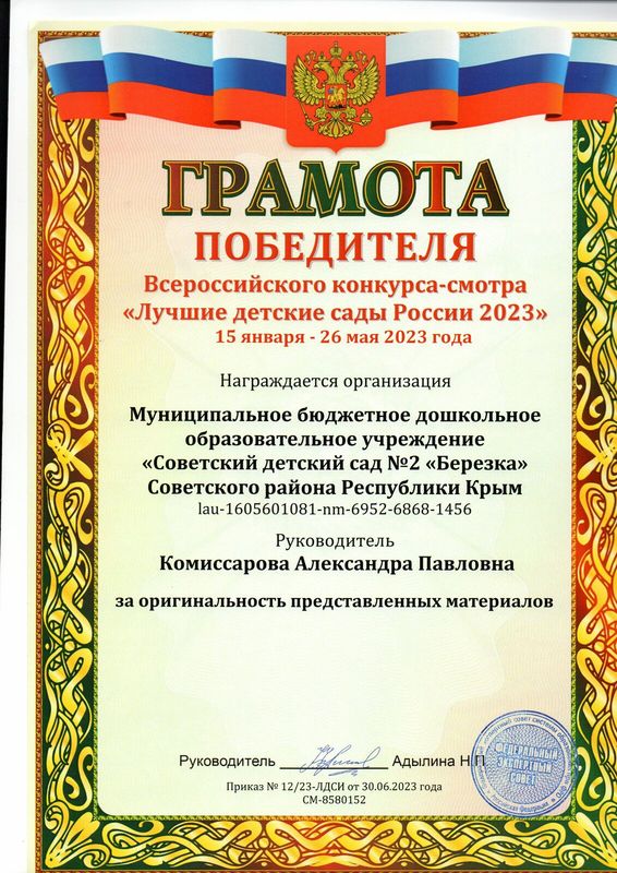 Муниципальное бюджетное дошкольное образовательное учреждение «Советский детский сад №2 «Березка» Советского района Республики Крым