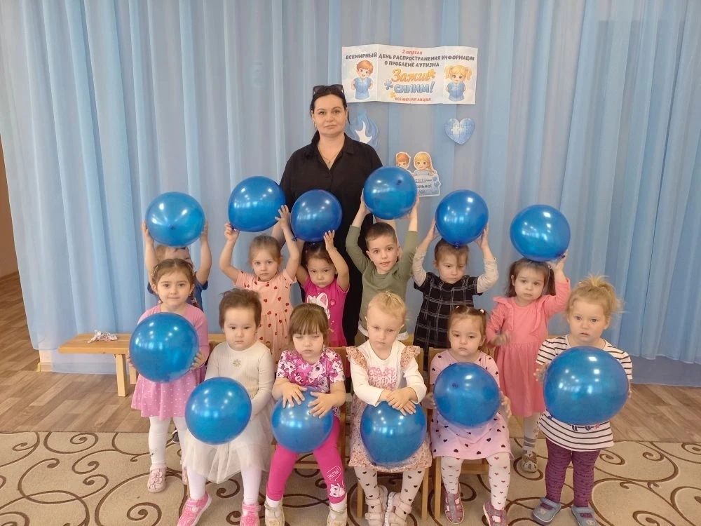 Воспитанники детского сада приняли участие в международной акции «Зажги синим», приуроченной ко Всемирному дню распространения информации об аутизме. Основная цель этой акции — формирование у детей и взрослых представлений об особенностях людей с ограниченными возможностями, а также знакомство с аутизмом и трудностями, с которыми сталкиваются дети с этим диагнозом.