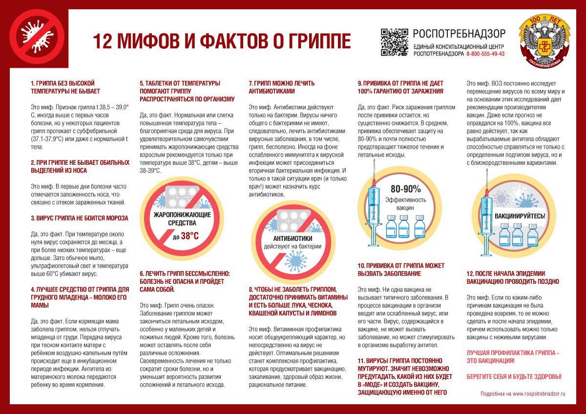 НАПОМИНАЕМ, что информационно-методические материалы по профилактике гриппа, ОРВИ, новой коронавирусной инфекции (COVID-19) и рекомендации о профилактических и дезинфекционных мероприятиях по предупреждению распространения новой коронавирусной инфекции (COVID-19), разработанные Роспотребнадзором и Минздравом России, размещены на их официальных